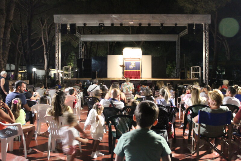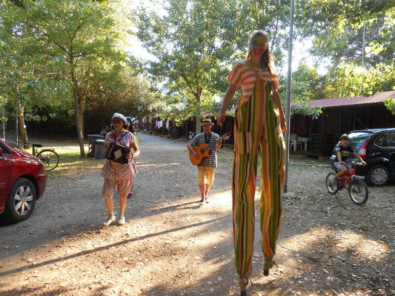 Il pomeriggio è introdotto dal passaggio festoso, tra viali e piazzole, dell’eclettico duo, che suonando la chitarra e l’organetto, richiamano allegramente i bambini, che talvolta si accodano a formare una piccola sfilata come nella fiaba del Pifferaio magico.