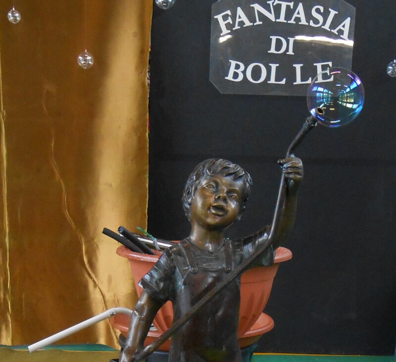 La scenografia è snella e allo stesso tempo suggestiva, arricchita dalla statuina in bronzo della Fontanella dell’Infanzia che suscita sempre una suggestiva sorpresa nella produzione delle prime bolle.