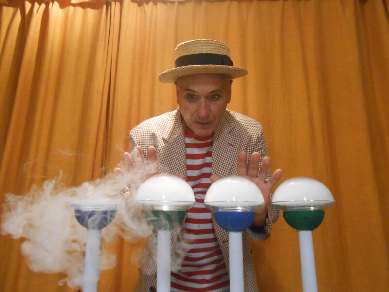 Lo spettacolo è arricchito da alcuni trucchi di prestidigitazione.