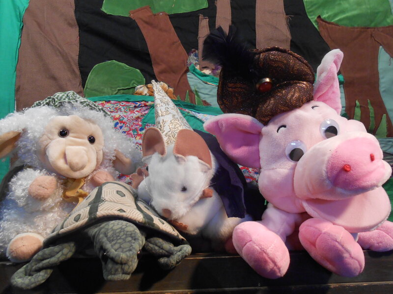Ale il maiale, Pippo il topo bianco, Lella pecorella, Uga tartaruga fanno le prove di coro per cantare alla fine tutti insieme, anche con i bambini; Tata la talpa si allena a scavare gallerie sempre più velocemente per sorprendere gli amici con i suoi scherzi … di apparizione; Gigione il procione balbuziente e Bice l’istrice cuoca, preparano una deliziosa merenda di spiedini di frutta fresca, accompagnandosi allegramente con la filastrocca della macedonia; Lello serpentello, adora indossare il suo cappello e abbellire il bosco con ghirlande di fiori colorati; insomma tutti, o quasi tutti, ognuno con le proprie diverse capacità, collaborano per vivere in armonia questo giorno di festa.