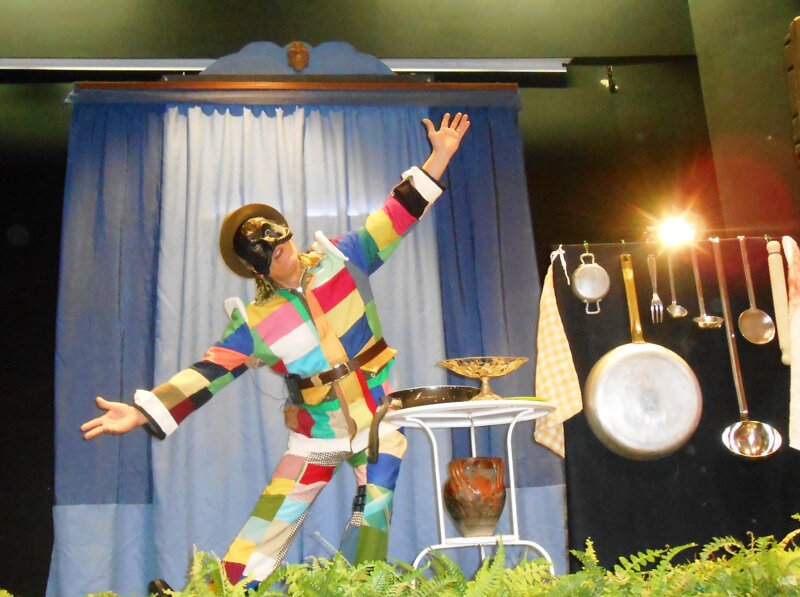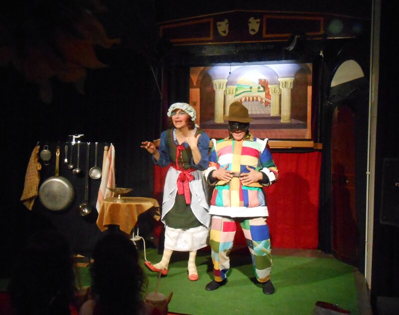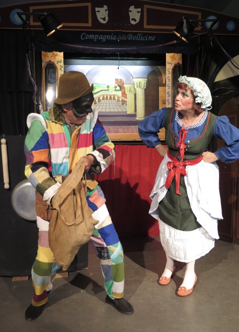 La struttura dello spettacolo si basa sulla ritmica alternanza di scene in cui i due personaggi d’attore, Colombina e Arlecchino oltre ad interloquire con il pubblico, dialogano sia tra di loro sempre alla ricerca di stratagemmi, sia con i personaggi burattini interpretati con sorprendente avvicendamento.